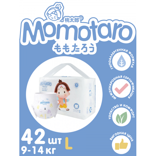 Momotaro Подгузники-трусики детские 4/L (9-14 кг), 42 шт